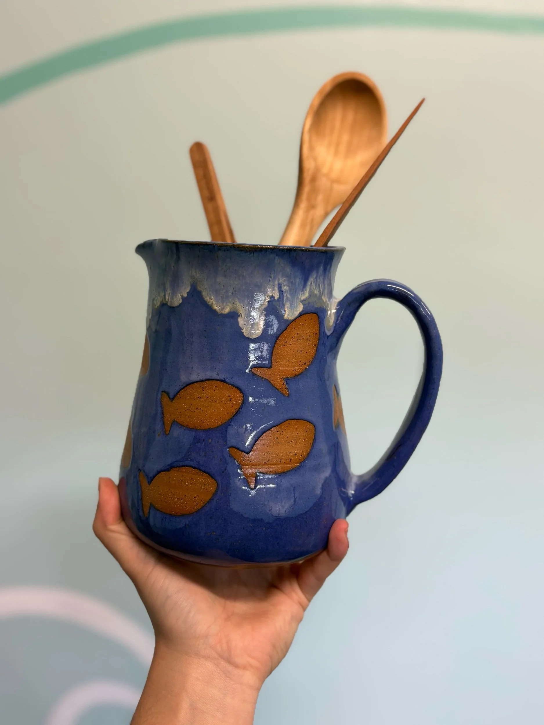 Shop › Fishes swimming pitcher vase Image 1 of 1 Fishes swimming pitcher vase $60.00 Add To Cart Added! Reviews Reviewer Name Review Date Star Rating Description Posted on Etsy Product Show More